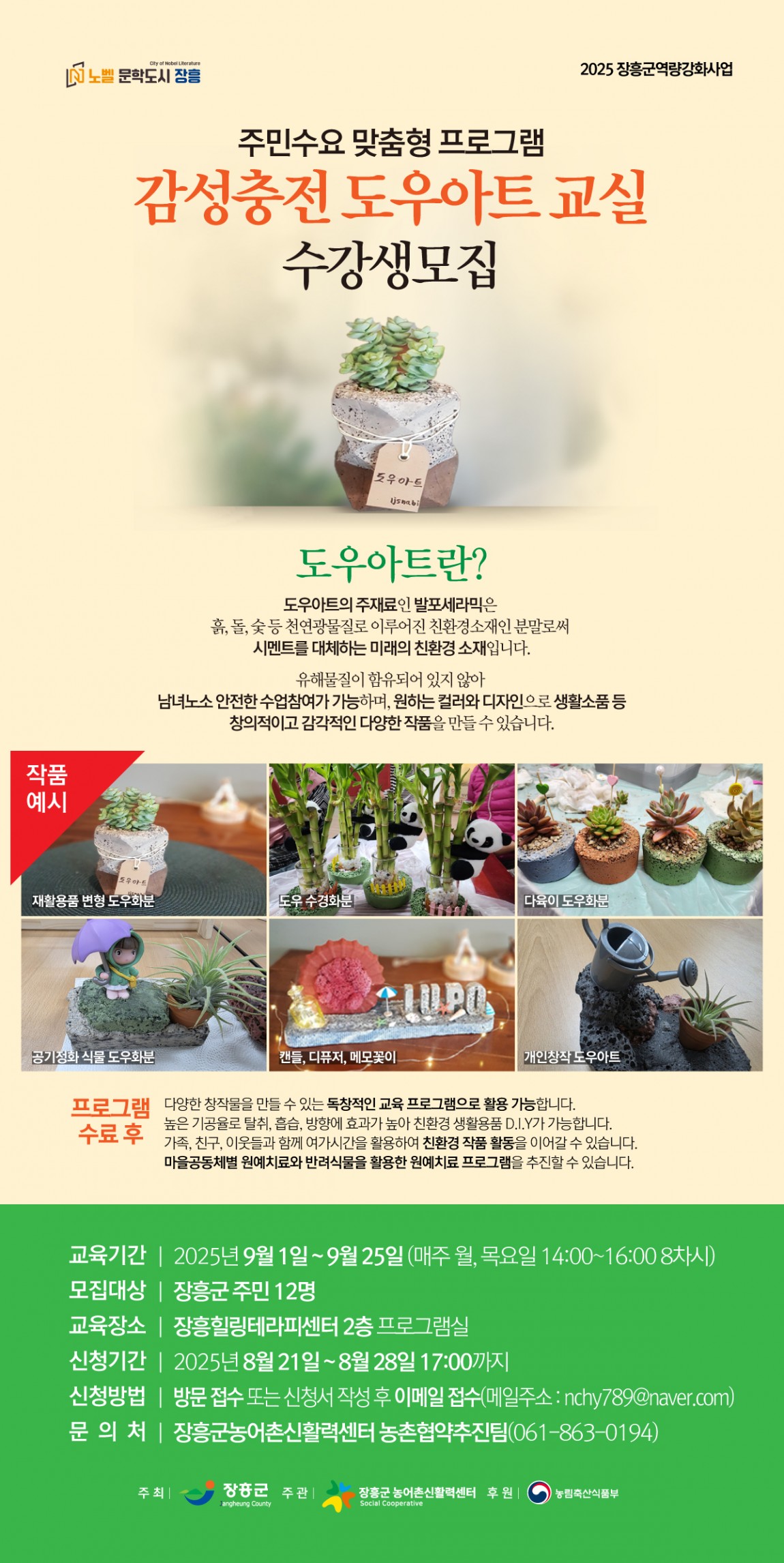 □ 사 업 명 : 2025년 장흥군역량강화사업(농림축산식품부) "감성충전 도우아트 교실" 모집 공고