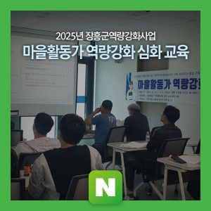 ‘마을활동가’는 장흥군 주민들과 함께 마을을 관찰하고, 마을의 장점을 강화하고 단점은 개선하기 위한 활동을 기획하고 실행하는장흥군의 실천가입니다.2025년 장흥군 마을활동가 양성을 위한 “마을활동가 역량강화 교육”참여자를 다음과 같이 모집합니다.2025년 7월 29일1. 사 업 명: 2025장흥군역량강화사업 지역인적자원네트워크 구축『마을활동가 역량강화 교육』2. 신청기간: 2025 7. 29.(화) ∼ 8. 12.(화) 17:00까지 (2주간)3. 신청대상: 장흥군민 누구나이런 분들에게 추천합니다!- 마을에서 뭔가 해보고 싶은데 어…